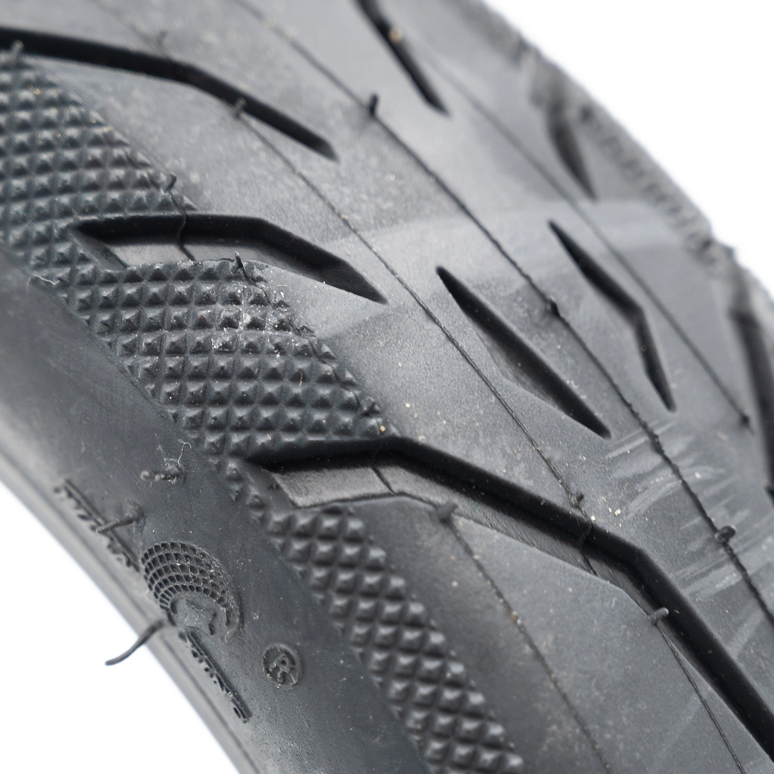 Construcția tubeless a anvelopei vă ridică calitatea călătoriei, cu o manevrabilitate și o stabilitate îmbunătățite. Fără o cameră de aer, anvelopa își păstrează o formă consistentă, oferind o rulare mai lină și mai receptivă.